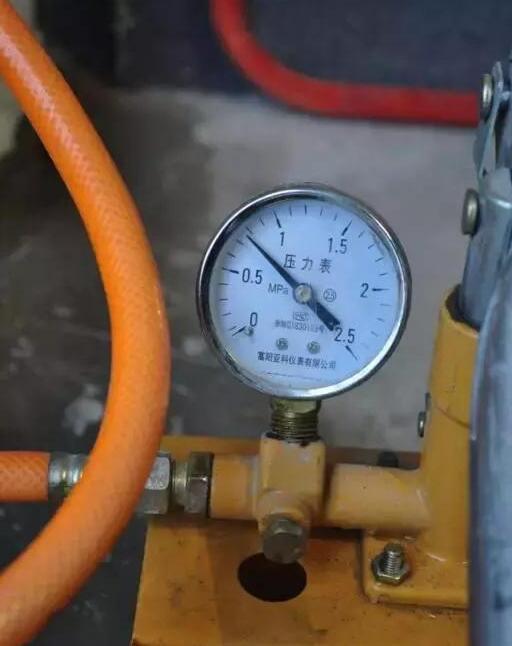 首先用软管衔接冷、热水管,二者同时打压;装置好打压器后,放掉管内氛围,使全部回路内充溢水;封闭水表及里面闸阀,将水压打至国家规范0.7MPa,30分钟不渗漏,且压力表下降至0.05MPa之内即为及格。