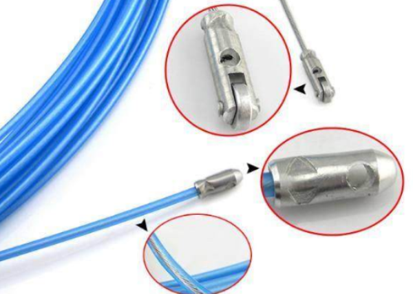 现在随着技术得发展,装修中的一些工具也在源源不断的更新,所以现在聪明的师傅都不再用钢丝绳了,而是用这个,穿线快又不卡线。现在专业的穿线器外皮都是用钢丝外包胶制成,硬度好又光滑,比先前的钢丝绳强太多,弯头处也不容易卡,尤其是送线头处安装了一个滑轮,很受师傅们的喜欢。