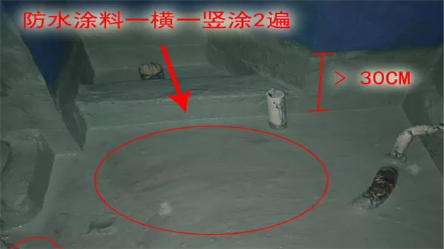 2、通常防水层涂刷高度控制在30cm即可,但是淋浴区要做到180cm,最好做到顶面。