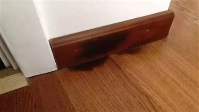 原因4:卫生间门口的防水没处理好或者没做挡水沿,水汽顺着地板空隙到对面墙体上了,导致墙面发霉。