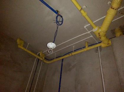正确做法:水管从顶部走,厨房卫生间用铝扣板吊顶遮住,穿过客厅有些沿边角走,用石膏线包上,假如呈现漏水可以立刻发现。布管时,保证冷热水管的距离。